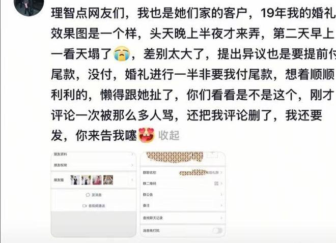 还有网友爆料称,这已经不是这家婚庆公司第一次这么干了,自己当年举办婚礼时也曾遇到类似情况。
