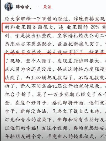 参考信息源:[1].官方媒体:环球网 20255-05-12《酒店回应婚礼开始前婚庆公司撤场:新人对效果不满,最后新郎自己主持婚礼》[2].个人媒体:皇家婚礼~黄蓉但为提升文章可读性,细节可能存在润色,请理智阅读,仅供参考!