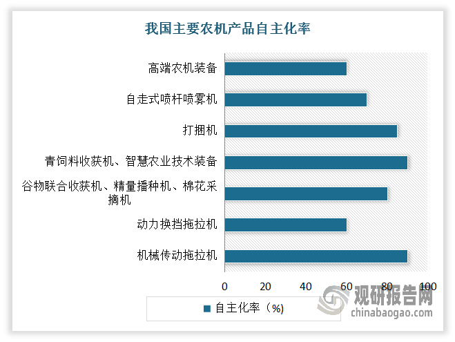 尤其是在高端农业机械方面,我国仍然存在较大的技术瓶颈,例如高压共轨、高效传动、种管收作业、高精度传感、高质智控等效率、可靠性等技术实现是国外领先水平的50%左右,高性能液压系统、精密排种器、打捆机打结器、高端专用传感器智能控制元器件等零部件主要靠进口(对外依存度仍高达90%),在重大装备自主创新能力方面还有短板,全程全面机械化仍旧有40%左右的产品处于空白阶段,外资品牌还占据我国高端农业机械80%以上市场份额。